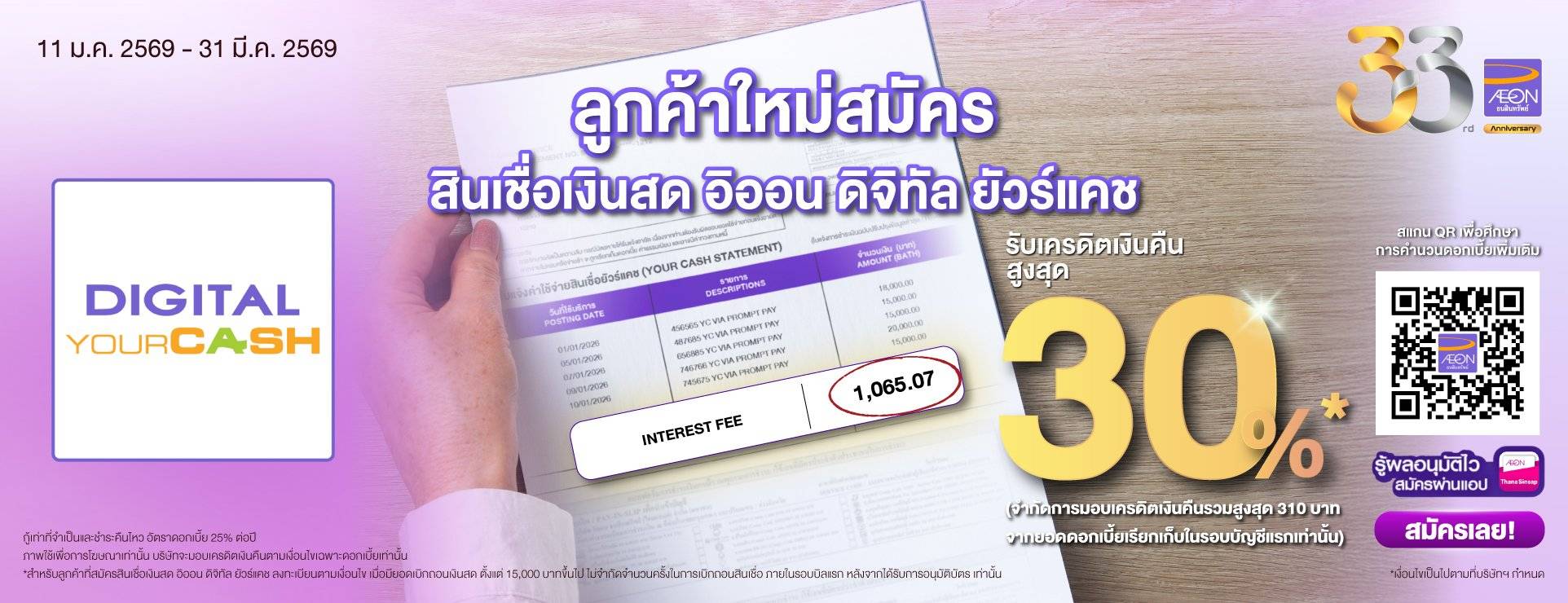 Cash back 5% when spending at online shopping stores* (Maximum 1,000 Baht/ Primary card/billing)