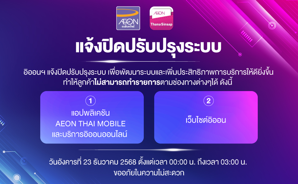 อิออนฯ แจ้งปิดปรับปรุงระบบ