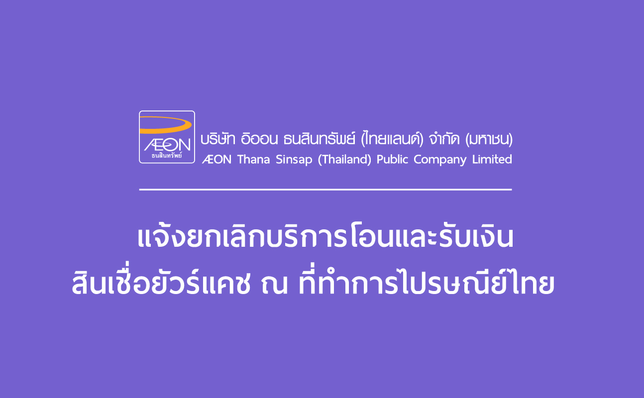 แจ้งยกเลิกช่องทางบริการโอนและรับเงินสินเชื่อยัวร์แคช ณ ที่ทำการไปรษณีย์ไทย