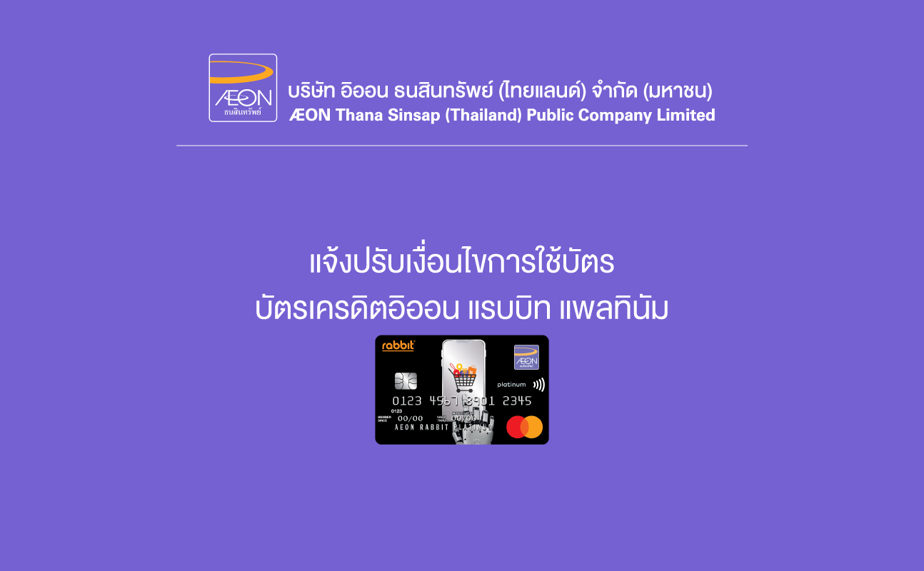 บริษัท อิออน ธนสินทรัพย์ (ไทยแลนด์) จำกัด (มหาชน) (“บริษัทฯ”) ขอแจ้งยกเลิกการให้คะแนนสะสม สำหรับยอดใช้จ่ายผ่านบัตรเครดิตอิออน แรบบิท แพลทินัม