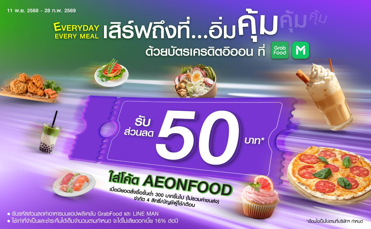 บัตรที่ร่วมรายการ : คะแนนสะสมที่เกิดจากการใช้จ่ายผ่านบัตรเครดิตอิออนทุกประเภท (ยกเว้น คะแนนสะสมที่เกิดจากการใช้จ่ายผ่านบัตรเครดิตอิออน รอยัล ออร์คิด พลัส, บัตรเครดิตบิ๊กซีและบัตรเครดิตเพื่อองค์กร) ผ่าน AEON Mobile App.