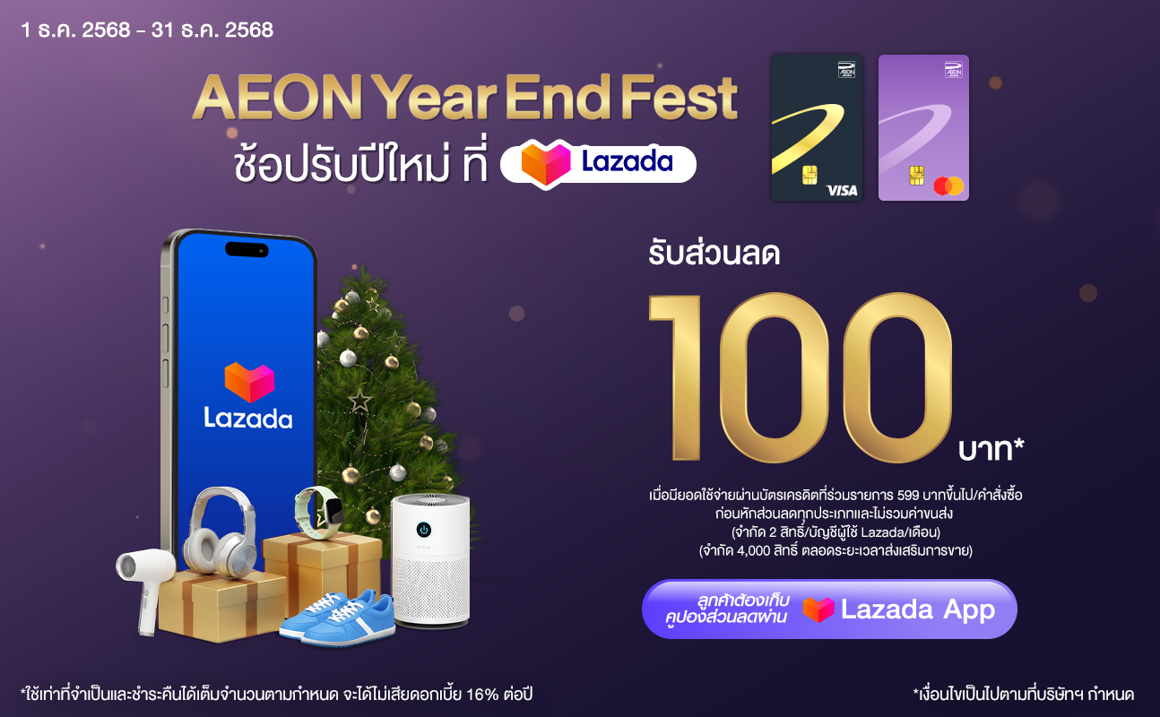 Eligible Card : TThe reward points earns through spending by all AEON Credit Cards (Except points from AEON Royal Orchid Plus, Big C Credit Card, and AEON Corporate Card) via AEON Mobile App.