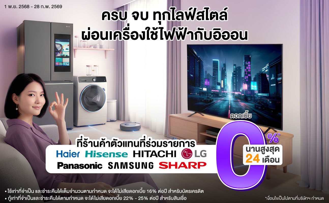 ผ่อนเครื่องใช้ไฟฟ้ากับอิออน 0% นานสูงสุด 24 เดือน กับแบรนด์เครื่องใช้ไฟฟ้าชื่อดังมากมาย